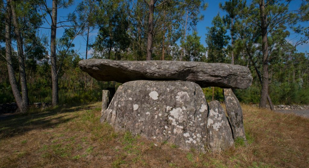 El dolmen de Cerqueira o dolmen de Pedra Moura, situado en la sierra del Arestal, es un excelente ejemplo del magalitismo de esta región (dolmen de corredor), y se remonta su edificación a hace cerca de 5000 años. Este nombre viene del corredor de acceso a la cámara funeraria constituida por grandes piedras colocadas en vertical o con un poco de pendiente. Las cámaras funerarias son el lugar donde se depositaban los muertos, y están constituidas por 7 a 9 piedras verticales, destacándose la de cabecera por ser la única piedra absolutamente vertical, que soporta el peso de los restantes monolitos. Esta estructura poligonal se completa con una piedra tapa o sombrero y reforzada con piedras y tierra alrededor (mamoa o tumulus). El enorme esfuerzo que acarreaba la construcción de estos dolmenes se justifica por la creencia de estos pueblos en la vida más allá de la muerte.