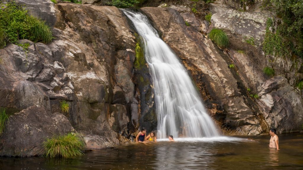 La cascada del Pozo de Grade es una sorprendente caída de agua con 12 metros de altura situado entre el pozo de la Vaca (accesible a través de la acequia de Lourizela) y la albuera del río Arões. Para llegar a la cascada hay que subir cerca de 300 metros por el lecho del río. La cascada aprovecha el desnivel de la geomorfología del río Arões, aquí denominado Lordelo. Este desnivel, río arriba desde la cascada, da origen a un canal de desague formado por la coalescencia de innumerables “marmitas de gigante”, configurando un curioso y sinuoso laberinto escarbado en el granito por la fuerza milenaria de las aguas. Más abajo, en el pozo de la Vaca, tiene origen la acequia de Lourizela, que lleva el agua para mover a los molinos y para el riego hasta Lourizela, recorriendo más de tres kilómetros. La cascada del Pozo de Grade está situada cerca de Lameiras, y el pozo de la Vaca está cerca de Parada.