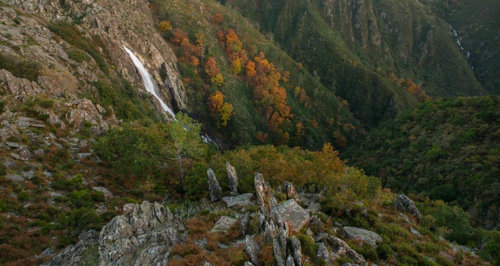 La biodiversidad aquí presente es sorprendente. Las rapaces aprovechan las corrientes de aire ascendente para su vuelo planeados y los espacios abiertos para la caza. Con alguna suerte se pueden avistar el halcón peregrino, el águila perdicera y el búho real, y especies como el aguilucho cenizo, el milano negro, el ratonero, el cernícalo común, el águila culebrera, el cárabo y el mochuelo común son frecuentes. En las escarpas de pizarra y grauvaca se desarrollan plantas rupícolas muy raras como la encinilla portuguesa, la murbequiela o el arzola, planta con más de 1 metro de altura de la familia de las umbelíferas. El valle encajado es además refugio de una planta de la laurisilva continental – el rododendro, especie endémica ibérica muy rara.