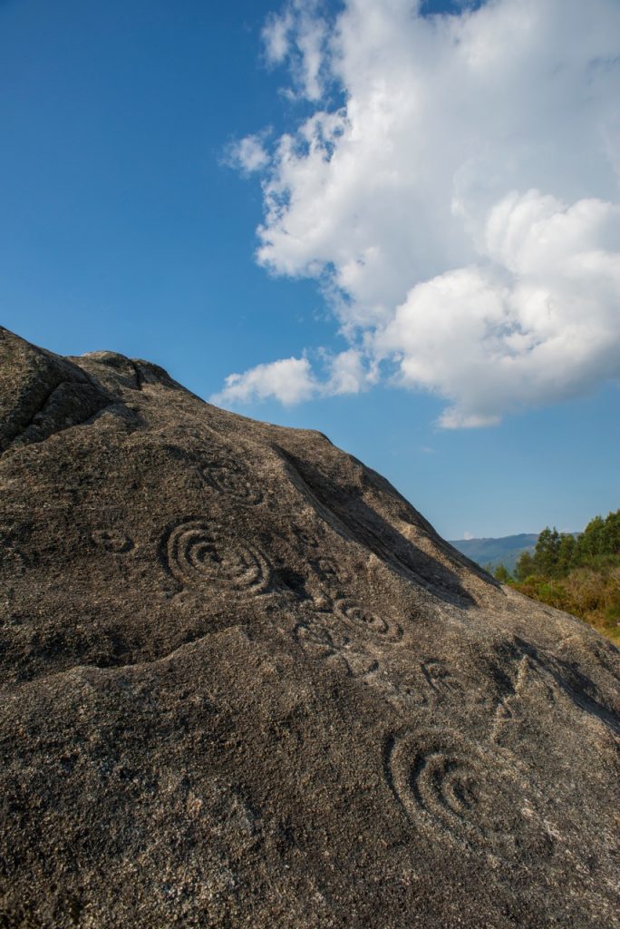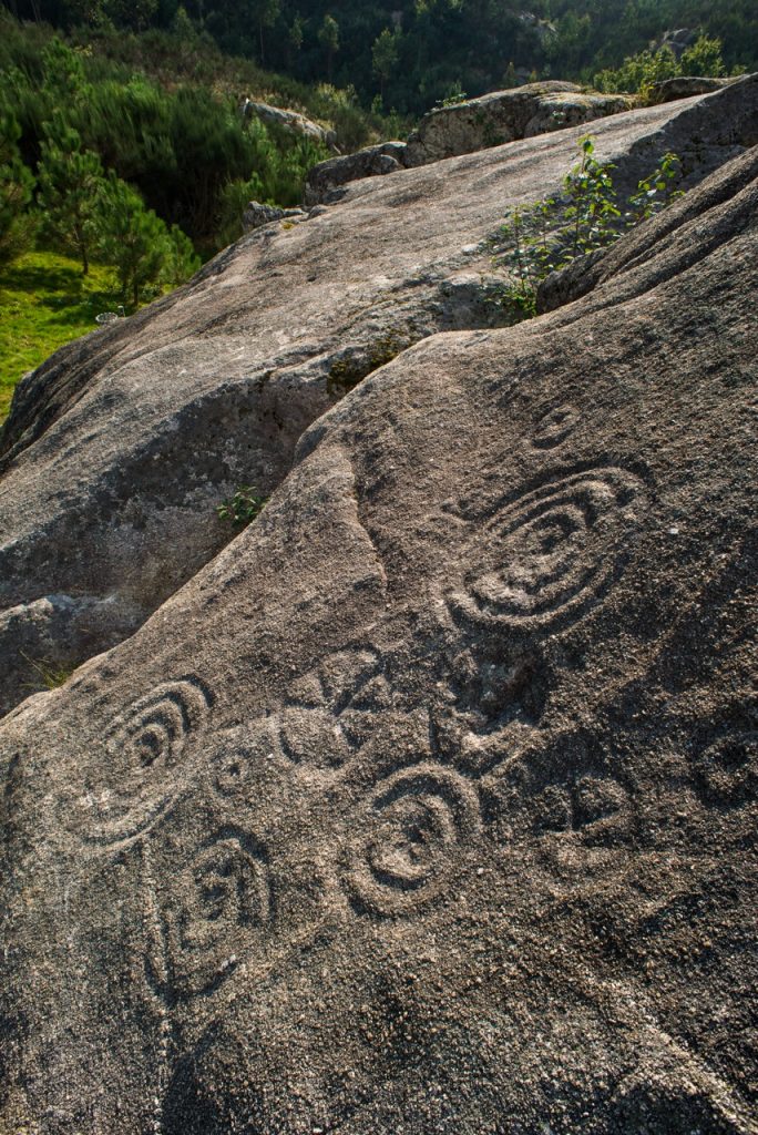 Las leyendas y tradiciones locales atribuyen la existencia de estos grabados a la presencia romana en esta región. Sin embargo todo indica que el arte Atlántica de la cual esta manifestación artística forma parte se ha expresado desde el 4º milenio al 1º milenio a. C., entre el Calcolítico inicial y la Edad del Bronce. El nombre Outeiro dos Riscos (o “Cabeço do Outeiro dos Riscos”, como también es conocido localmente) está relacionado, muy probablemente, a los trazos y rayas abiertos en las caras de los afloramientos graníticos. El significado de este arte rupestre está envuelto en misterio, con algunas hipótesis propuestas por los investigadores: ¿Serian grabados con carga simbolico-religiosa? ¿Los petroglifos indican lugares de la geografía del terreno? ¿Serian los círculos cuerpos celestes? ¿Estos monolitos marcan dominios de los señores de la guerra? Se queda en abierto la interpretación de este arte rupestre de belleza intemporal.