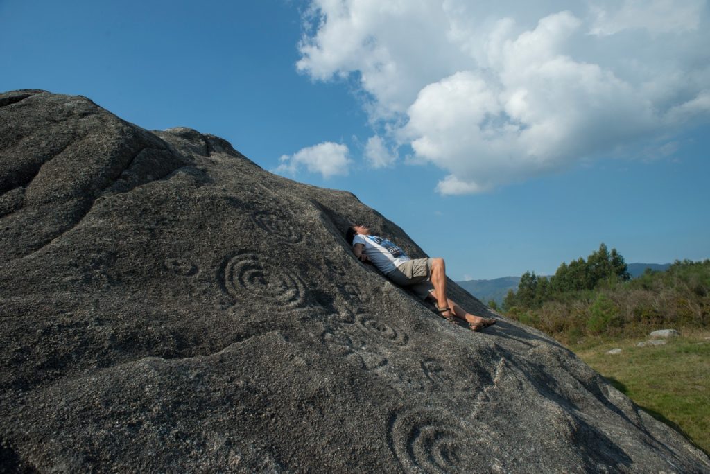 El Outeiro dos Riscos es un monolito con 15 metros de largo y 4 metros de ancho, ubicado e media ladera de la vertiente occidental de la sierra del Arestal, y ha sido clasificado como SIP – Sitio de Interés Publico, en 2013. Los grabados insculturados en él ocupan un área de 2,75 metros de alto y 1,75 metros de largo, y los motivos dibujados son exclusivamente de carácter geométrico, dominando las combinaciones circulares, particularmente conjuntos de círculos concéntricos. Todos los motivos están dispuestos en la cara girada a la cima, donde se forma un pequeño anfiteatro natural en posición casi vertical con algunos círculos concéntricos de dimensiones relevantes, por veces rellenos con cruciformes. Cerca de aquí un otro monolito también presenta grabados, con una pequeña espiral y un reticulado.