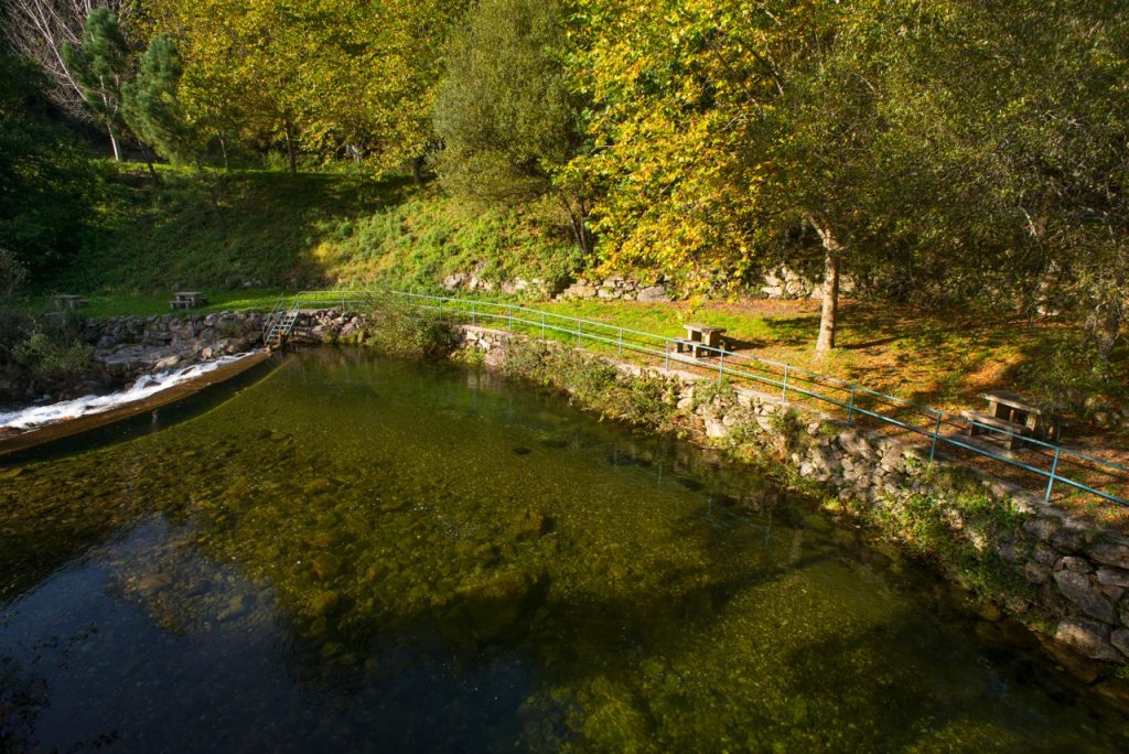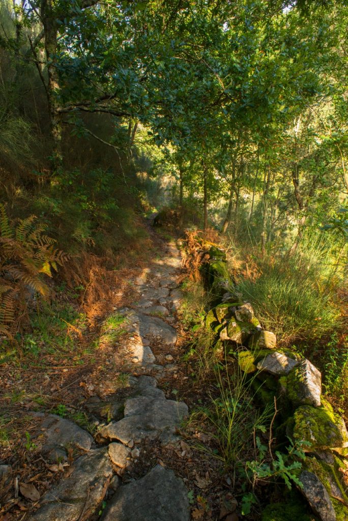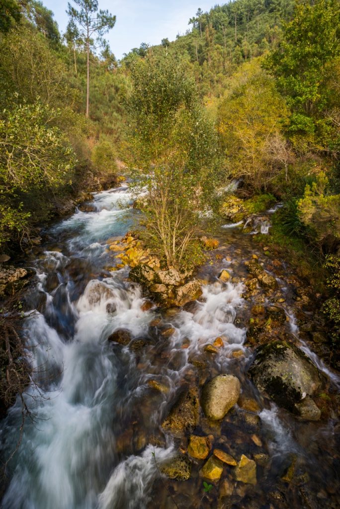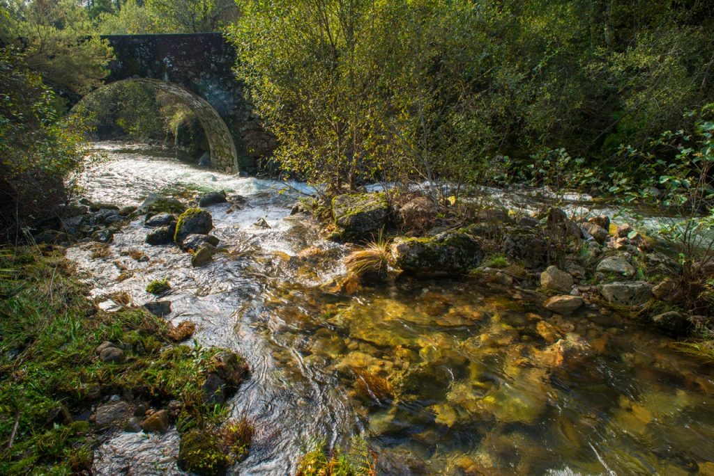 En el puente de Paço do Mato estamos a pocos kilómetros de la Frecha da Mizarela, donde un único rododendro sobrevive aún como una reliquia de los bosques terciarios que en otros tiempos cubrieron la región. Aquí, el río Caima corre impetuoso en invierno y manso en verano, siempre acompañado en su curso por el mirlo acuático y por el carbonero. Junto al río crecen aquí la primavera, los pajarillos y la palominera, testigos de su fertilidad. Los parasoles, grandes y deliciosas setas, crecen generosamente junto al camino y las ranas patilargas saltan cerca del río que las vio nacer. El ciervo volante, majestuoso coleóptero protegido en Europa, vive aquí en los troncos de los robles más viejos, simbolizando la armonía y madurez de estos ecosistemas.